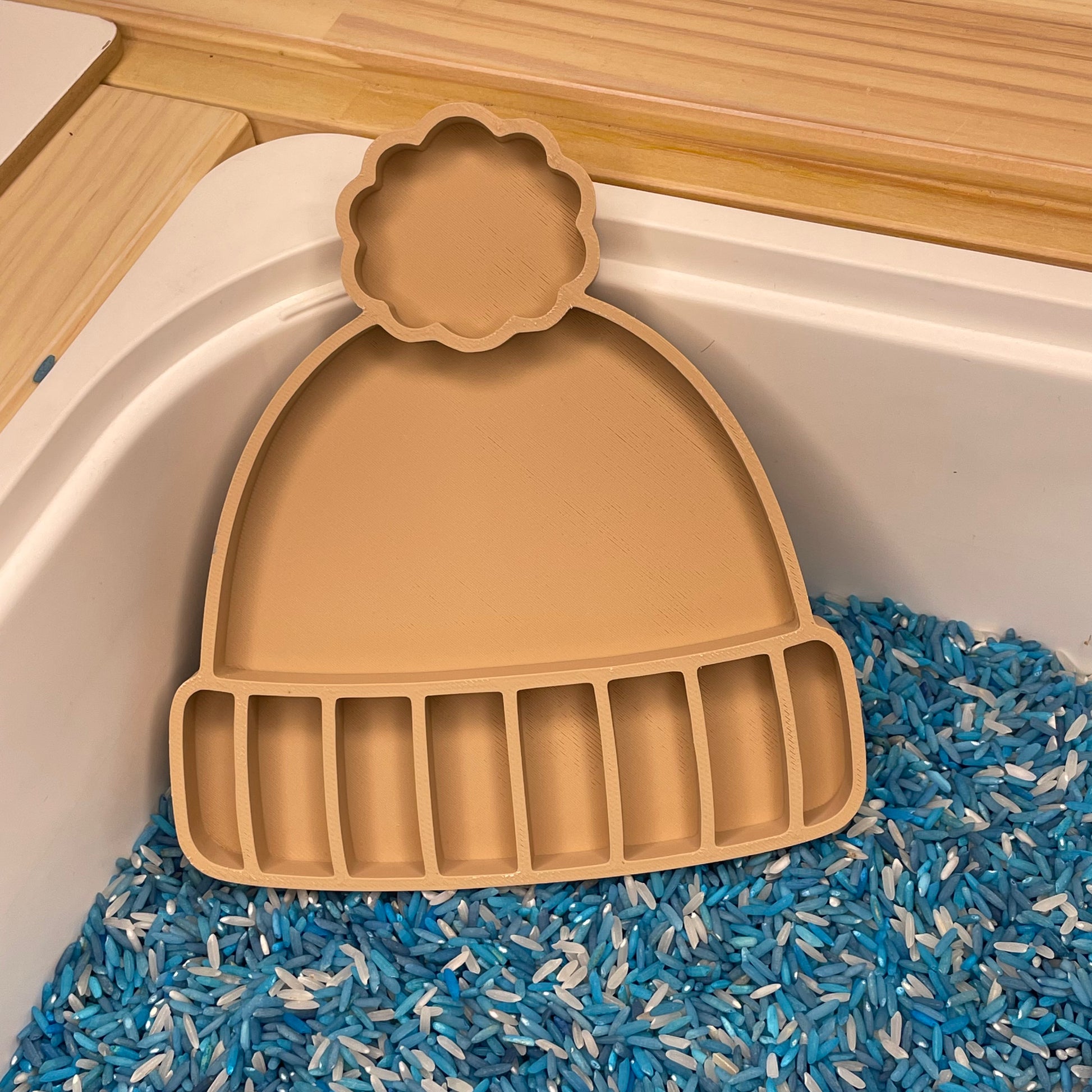 Deze handgemaakte vulvorm is perfect te vullen met droge materialen zoals speelrijst, kikkererwten, fijn zand en meer. Ideaal voor sensorisch spel dat niet alleen leuk is, maar ook educatief.